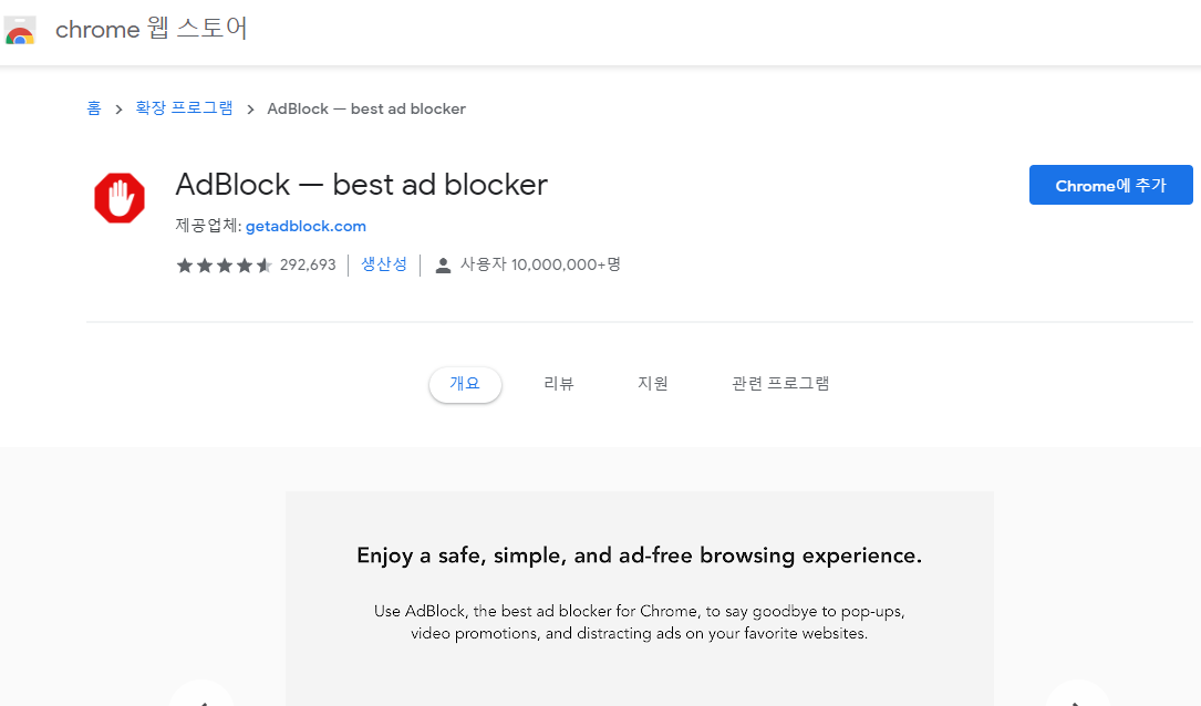 사진의 캡쳐된 화면에서 오른쪽 상단, chrome에 추가 버튼을 누르시고 설치를 하시고 나면,