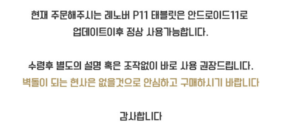이상으로 오늘 사서 한참 뒤에 올 것 같은 레노버 P11 제품을 미리 알아 보았습니다. 이미 커뮤니티에서는 가성비 태블릿으로 호평이 자자한데요. 저도 도착하면 다시한번 사용기를 통해 인사드릴 수 있도록 하겠습니다. 감사합니다.
